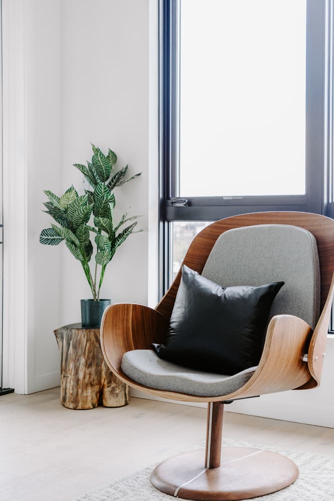 Black faux leather throw pillow