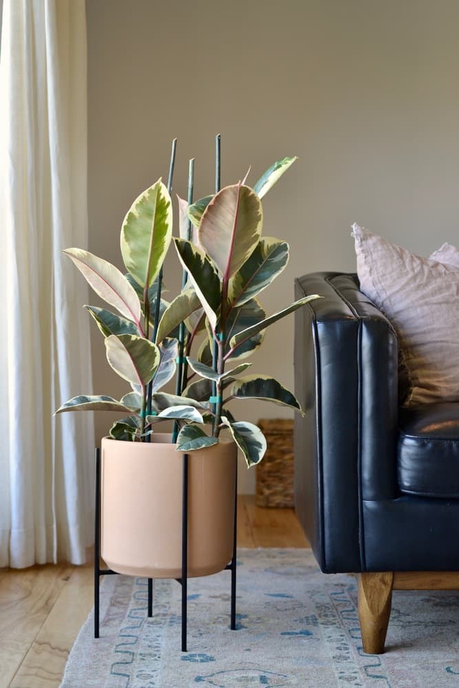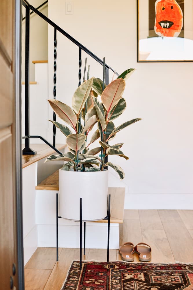 Mid-Century Modern Terracotta Planter with Black Plant Stand